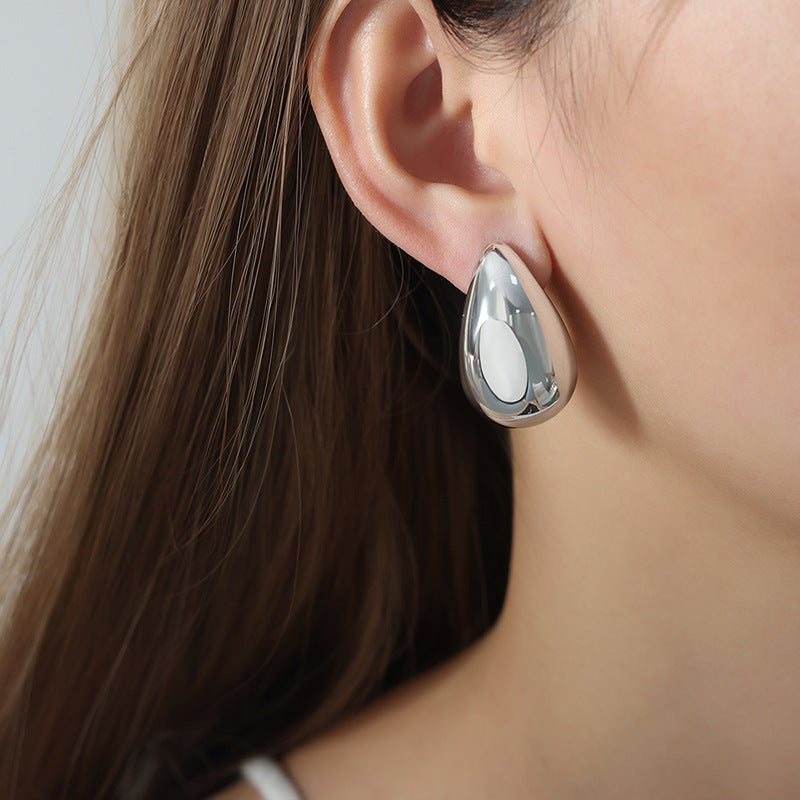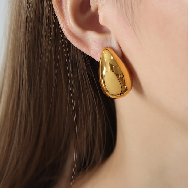 Simple Titanium Steel Gold Plated Water Drop Ear Studs Women